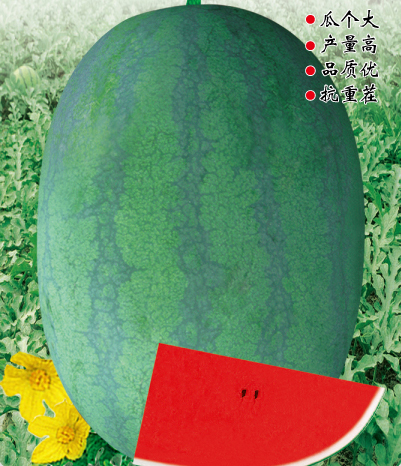 ■ 特征特性 :早中熟種,坐果至成熟28天左右,全生育期90天左右。植株長(zhǎng)勢(shì)穩(wěn)健,抗病抗逆性強(qiáng),生態(tài)適應(yīng)性廣,易坐果。果實(shí)橢圓形,果皮墨綠色底上覆暗條帶,果面光滑無棱帶蠟粉。瓤色深紅,瓤質(zhì)酥脆,中心糖14%左右,口感好,風(fēng)味佳。平均單果重8-10kg左右,大者20kg以上(特殊栽培),一般畝產(chǎn)6000公斤以上。皮厚1.0cm左右,果皮硬度強(qiáng),耐儲(chǔ)運(yùn)。高抗枯萎病抗重茬,兼抗炭疽病和病毒病,在2年重茬地種植,其產(chǎn)量品質(zhì)無明顯差異。綜合性狀優(yōu)于目前抗病品種。