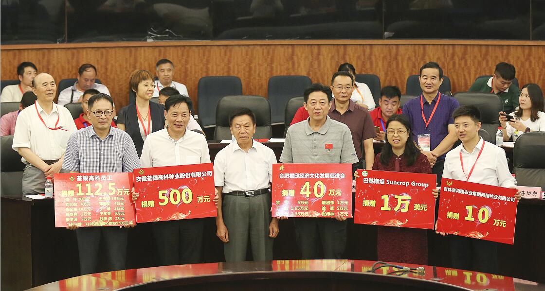 善人者,人亦敬之。張海銀種業基金會五年來的公益慈善活動得到社會各界愛心人士和愛心單位600余次的的慷慨捐贈,累計950多萬元。會上還進行了基金會2018年公益愛心捐贈儀式。荃銀高科母子公司高管和員工多次參與基金會濟困助學公益慈善活動,本次捐贈112.5萬元;吉林鴻翔種業集團鴻翔種業有限公司捐贈10萬元;巴基斯坦Suncrop Group(陽光作物集團)捐贈1萬美元;合肥霍邱經濟文化發展促進會及會員為基金會貧困助學項目捐贈40萬元;安徽荃銀高科種業股份有限公司捐贈500萬元?;饡淳栀浫司栀浀囊庠负驮跇I務范圍內開展公益項目和慈善活動。